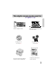 - Manufacturer's contents Please check that you have the correct contents before using this product. marked contents are optional. Digital Camera Pouch AV cable USB cable Camera strap User manual Product warranty Software CD SD memory card Memory Stick Duo AC adapter (3.