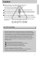 - Warning indicator There are several warnings that may appear on the LCD display Warning indicator Causes - Memory card error - Turn off the camera power and turn it on again - Insert the memory card again - Format the memory card (p.