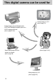 - This digital camera can be used for Creation of a digital photo album. Recording your voice. (refer to page 22) You can even create your own unique gift wrap paper by using your digital images. Taking a self-portrait and using the image to personalize name cards. Recording a movie clip (refer to page 21) Inserting images directly into any electronic document.