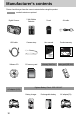 - Manufacturer's contents Please check that you have the correct contents before using this product. marked contents are optional. Digital Camera 2 AA Alkaline Batteries Pouch AV cable USB cable Camera strap User manual Product warranty Software CD SD memory card Memory Stick Duo Battery pack (SBP-3603) AC adapter (3.