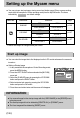 mode (with the exception of Voice recording mode) has the MyCAM menu. The items
