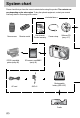 - System chart Please check that you have the correct contents before using this product. The contents can vary depending on the sales region. To buy the optional equipment, contact your nearest Samsung dealer or Samsung service centre. < Included items > Camera case DPOF compatible printer (see p.86) AC cord Remote control User manual, Product warranty Camera strap Software CD (see p.117) SD memory card/MMC (see p.