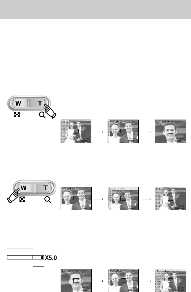 i.e. the subject will appear further away. Pressing the ZOOM W