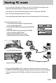 - Starting PC mode Ү If you connect the USB cable to a USB port on your PC and then turn on the power, the camera will automatically switch to "computer connection mode". Ү In this mode, you can download stored images to your PC through the USB cable. Ү The LCD monitor is always turned off in PC mode. Ү The camera status lamp will blink when the files are transferring via the USB connection. ƈ Connecting the camera to a PC 1. In any mode with the exception of Voice Recording mode, press the Menu button. 2.