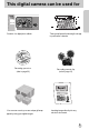 This digital camera can be used for Viewing images on a TV. (refer to page 70) Printing images using a dedicated printer, DPOF and PictBridge compatible printer or a DPOF-equipped photo lab. (refer to page 55~62) Taking a picture. (refer to page 20~41) Down loading image files from camera to computer. (refer to page 84) Editing images on a PC.