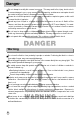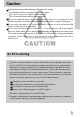 Danger Do not attempt to modify this camera in any way. This may result in fire, injury, electric shock or severe damage to you or your camera. Internal inspection, maintenance and repairs should be carried out by your dealer or Samsung Camera Service Center. Please do not use this product in close proximity to flammable or explosive gases, as this could increase the risk of explosion. Should any form of liquid or a foreign object enter the camera, do not use it.