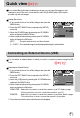 Quick view If you enable Quick View before capturing an image, you can view the image you just captured on the LCD monitor for the duration set in the [Q.VIEW] setup. Quick view is possible only with still images. Setting Quick View 1. In any mode other than Voice Recording mode, press the MENU button. SET UP BACK: 2. Press the LEFT/ RIGHT button and select the [SETUP] LAMP menu tab. SOUND LCD 3. Select the [Q.VIEW] menu by pressing the UP/ DOWN VIDEO button and press the RIGHT button. Q.VIEW 4.