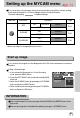 Setting up the MYCAM menu You can set up a start up image, start up sound and shutter sound. Every camera working mode (with the exception of Voice recording mode) has the MyCAM menu. The items indicated by are default settings. Menu tab Main menu Page Sub menu OFF USER IMAGE IMAGE 1 OFF S.SOUND P.89 IMAGE 2 IMAGE 3 OFF SOUND 1 SOUND 2 SOUND 3 OFF SOUND 1 SOUND 2 SOUND 3 P.90 P.90 SH.SOUND * Menus are subject to change without prior notice.