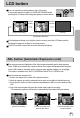 LCD button You can check the recording status in the LCD monitor. In any mode with the exception of VOICE RECORDING mode, pressing the LCD button will change the display as shown below. Pressing the LCD button [ Image & full information ] Pressing the LCD button [ Image & basic information ] [ LCD off ] Pressing the LCD button If the background image is too bright to view the menus, press the LCD button and the background image turn to black to view clear menus.
