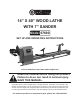 4” X 40” WOOD LATHE WITH 7” SANDER Model 67690 SET UP AND OPERATING INSTRUCTIONS Visit our website at: http://www.harborfreight.com Read this material before using this product. Failure to do so can result in serious injury. SAVE THIS MANUAL. Copyright© 2010 by Harbor Freight Tools®. All rights reserved. No portion of this manual or any artwork contained herein may be reproduced in any shape or form without the express written consent of Harbor Freight Tools.