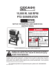 5,000 W, 540 RPM PTO Generator 65309 Set up, Operating, and Servicing Instructions Using an engine indoors CAN KILL YOU IN MINUTES. Engine exhaust contains carbon monoxide. This is a poison you cannot see or smell. NEVER use inside a home or garage, EVEN IF doors and windows are open. Only use OUTSIDE and far away from windows, doors, and vents. Visit our website at: http://www.harborfreight.com Read this material before using this product. Failure to do so can result in serious injury.