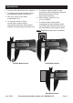 Instructions 1. Push the OFF ON button to turn caliper on. 5. To measure inside of object, set the top prongs inside object being measured. 2. To toggle measurement between inches Spread prongs apart until they and millimeters, press in/mm button. touch surface of object. 3. With jaws closed, press ZERO 6. When finished, press OFF ON to set readout to 0. to turn off Caliper. 4. To measure outside of object, 7.