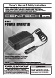 Specifications Continuous Power 80 Watts Input Voltage 12 Volts Nominal DC Output Voltage 115VAC/60Hz Fuse 10A Indicator Green LED = power on Output Wave Form Modified Sine Wave Outlets 1 - 120V grounded AC 1 - USB 5VDC, 500mA Features - Overload Shutoff @ 125W - Low Voltage Shutoff @ 10.5VDC Important Safety Information 1. This product is not a toy. Keep it away from children. 2. Use as intended only. 3. Inspect before every use; do not use if parts are loose or damaged. 4.