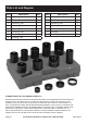 Parts List and Diagram Part Description Qty Part Description Qty 1 Receiving Tube 1 9 Installing Tube 1 2 Receiving Tube 1 10 Receiving Tube 1 3 Receiving Tube 1 11 Receiving Tube 1 4 Receiving Tube 1 12 Receiving Cup 1 5 Receiving Tube 1 13 Remover / Installer 1 6 Receiving Tube 1 14 Plug Bolt 1 7 Receiving Cup 1 15 Carrying Case 1 8 Installing Tube 1 4 5 3 9 8 10 1 2 11 15 14 7 13 6 12 PLEASE READ THE FOLLOWING CAREFULLY NEITHER THE MANUFACTURER