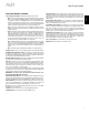 AVR Appendix Table A8 – Surround Modes – continued Virtual speaker Description Simulates 5.1 channels when only two speakers are present or a more enveloping sound field is desired. Incoming Bitstream or Signal ENGLISH Surround Mode • Dolby Digital • Analog (two-channel) • Tuner • PCM (32kHz, 44.1kHz or 48kHz) DTS Digital Using a different encoding/decoding method than Dolby Digital, DTS Digital also provides up to five discrete main channels, plus an LFE channel. • DTS 1/0/.0 or .1, 2/0/.0 or .