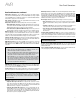 AVR Unit does not function Cause Solution • No AC power • Ensure that the power cord is plugged into a live AC power outlet ENGLISH Symptom Troubleshooting • Check if the AC outlet is switch-controlled Front-panel display lights, but there’s no sound or picture No sound from any speaker • Intermittent input connection • Secure all input and speaker connections • Mute is on • Press Mute button • Volume control is turned down • Turn up Volume control • • circuit problems is in protection mo