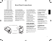AVR10 engelsk 11/01/98 10:10 Side 5 Rear Panel Connections FM OUTDOOR ANTENNA ENGLISH AM LOOP ANTENNA TV MONITOR FM INDOOR ANTENNA CENTER SPEAKER + 3 1 - 10 2 ANTENNA 300Ω/75Ω ADAPTOR 300Ω/75Ω ADAPTOR AM LOOP LEFT 16 VIDEO RIGHT MONITOR VCR 1 PRE OUT FM 75Ω SUB WOOFER OUT 14 AC OUTLET CENTER SPEAKER (8Ω) MAIN IN OUT IN 16 9 SERIAL NO. REAR SPEAKERS 4W OUT RIGHT 8 12 LEFT 18 LEFT REMOTE CONTROL VCR 1 MODEL NO.: AVR 10 HARMAN KARDON NORTHRIDGE CALIFORNIA U.S.A.