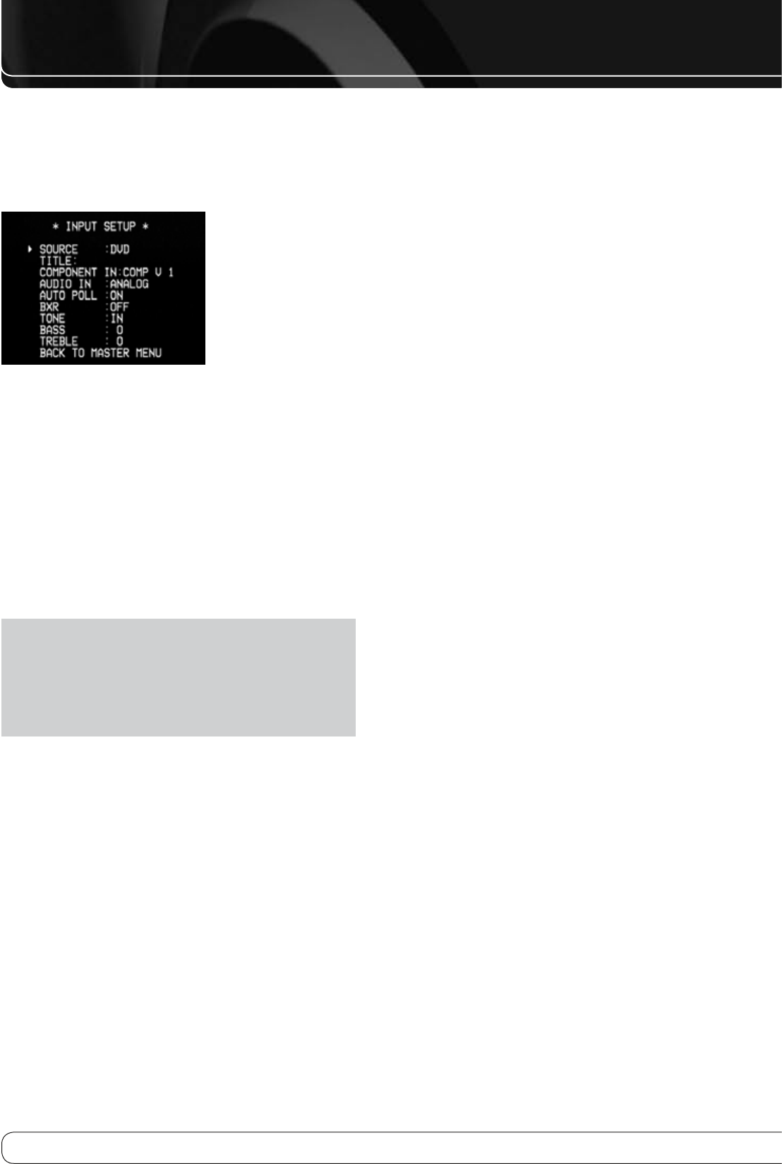 De overige regels in het Input Setup menu zijn voor het instellen van