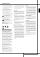 Fehlerbehebung SYMPTOM MÖGLICHE URSACHE LÖSUNG Das Gerät funktioniert nicht, obwohl der Netzschalter aktiviert ist. • Keine Netzspannung. • Vergewissern Sie sich, dass der Netzstecker richtig in der Steckdose steckt. • Prüfen Sie, ob die Steckdose Strom führt. Display leuchtet, es wird jedoch kein Bild oder Ton wiedergegeben. • Eingangsverbindungen sind unterbrochen. • Stummschaltung (Mute) ist aktiviert. • Lautstärke-Regler steht auf minimal.