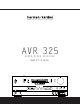 AVR 325 AUDIO/VIDEO RECEIVER 3 4 4 5 7 8 11 14 15 18 18 18 19 20 21 23 24 24 25 26 26 26 26 26 26 27 28 30 31 31 32 32 32 32 32 33 34 34 34 36 36 36 36 36 36 37 38 38 38 39 39 39 40 42 54 54 55 Introduction Important Safety Information Unpacking Front-Panel Controls Front-Panel Information Display Rear-Panel Connections Main Remote Control Functions Zone II Remote Control Functions Installation and Connections System Configuration Speaker Placement System Setup Input Setup Surround Setup Speaker Setup Dela