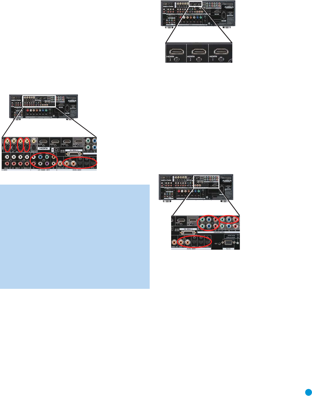 • Connect the DVD player’s digital audio output to one of the Coaxial or