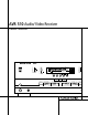 Troubleshooting Guide SYMPTOM CAUSE SOLUTION Unit does not function when Main Power Switch is pushed • No AC Power • Make certain AC power cord is plugged into a live outlet • Check to see whether outlet is switch-controlled Display lights, but no sound or picture • Intermittent input connections • Mute is on • Volume control is down • Make certain that all input and speaker connections are secure • Press Mute button • Turn up volume control Unit turns on, but front panel display does not light up