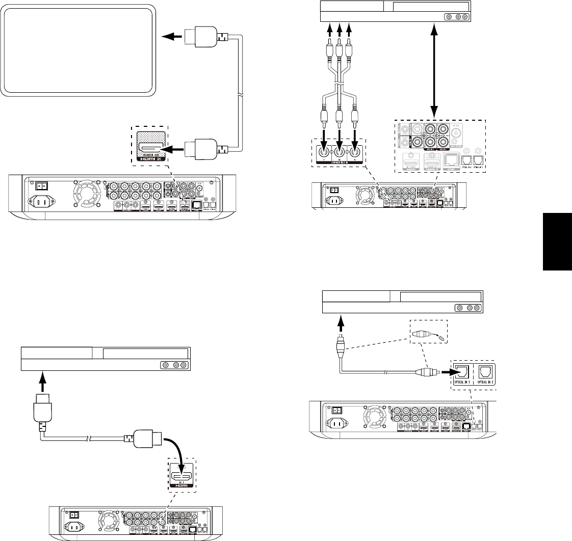 Nel caso in cui i dispositivi sorgente non HDMI siano dotati di uscite digitali ottiche, collegarli ai