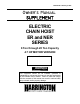 EFFECTIVE: February 2, 2004 Owner's Manual SUPPLEMENT ELECTRIC CHAIN HOIST ER and NER SERIES 8 Ton through 20 Ton Capacity 4.7 HP MOTOR VERSION Code, Lot and Serial Number WARNING This equipment should not be installed, operated or maintained by any person who has not read and understood all the contents of this manual. Failure to read and comply with the contents of this manual can result in serious bodily injury or death, and/or property damage.