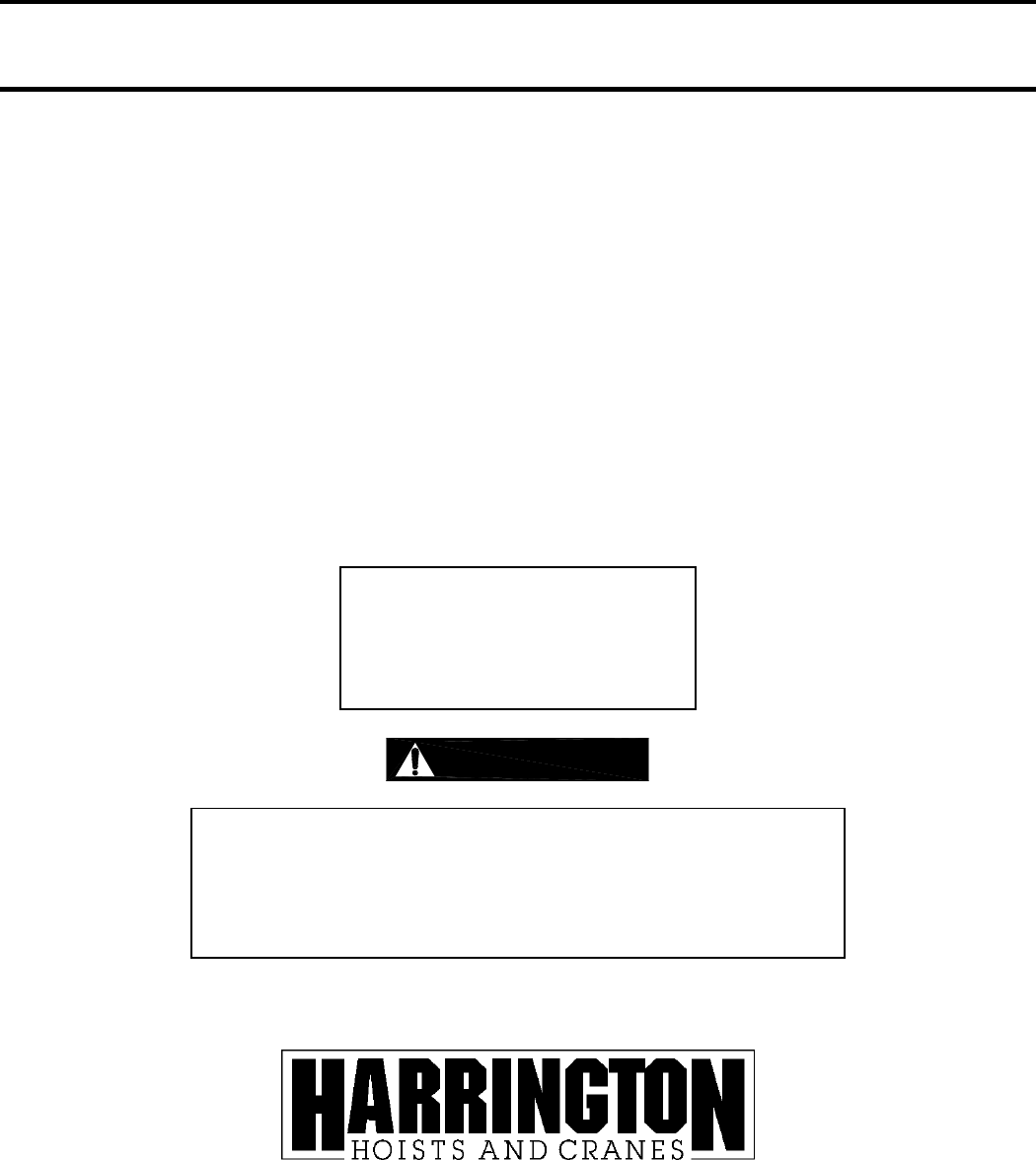 www.harringtonhoists.com Harrington Hoists, Inc. 401 West End Avenue Manheim, PA 17545-1703 Phone: 717-665-2000 Toll Free: 800-233-3010 Fax: 717-665-2861 Harrington Hoists – Western Division 2341 Pomona Rincon Rd.