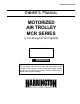 EFFECTIVE: April 24, 2003 Owner’s Manual MOTORIZED AIR TROLLEY MCR SERIES ¼ Ton through 6 Ton Capacity Code and Serial Number WARNING This equipment should not be installed, operated or maintained by any person who has not read and understood all the contents of this manual. Failure to read and comply with the contents of this manual can result in serious bodily injury or death, and/or property damage.