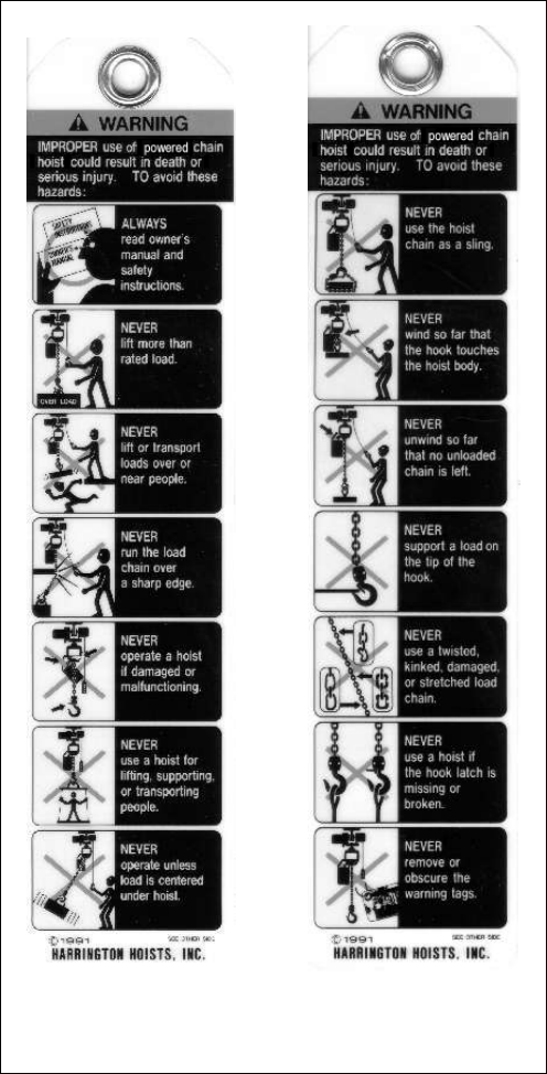 to the pendant cord for your hoist/trolley, order a tag from your dealer and install it. Read and obey all warnings attached to