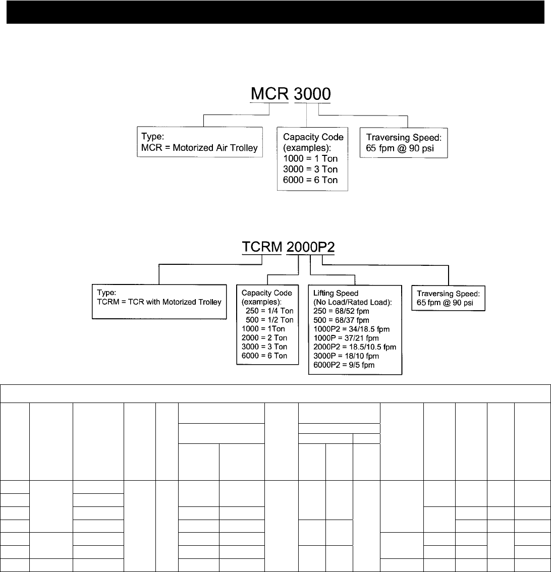 2.1.2 Product Code for MCR Air Trolley with TCR Series Air Hoist: