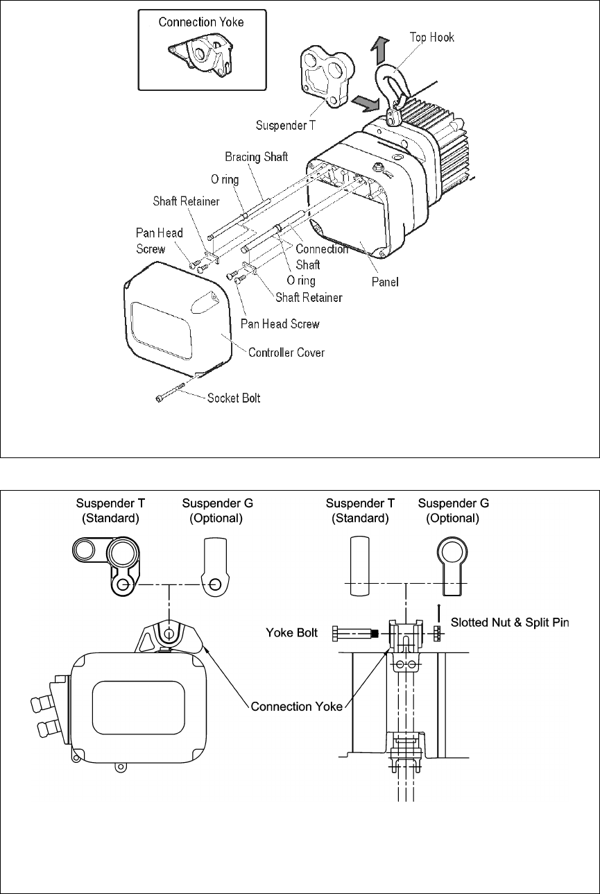 Figure 3-3 Installing Suspender T or Connection Yoke on ER2/NER2 Hoists –
