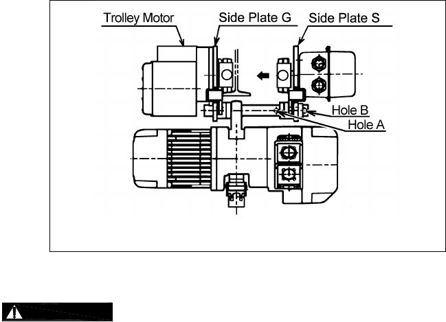 6) Move the hoist up into position between the trolley side plates and line up the trolley and hoist's