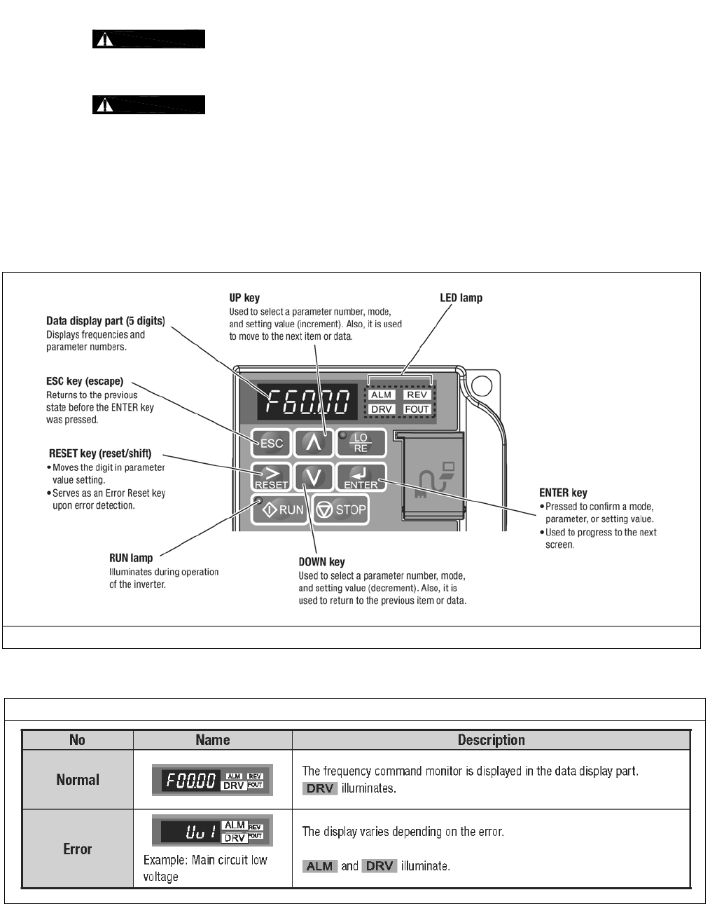 3.5.5 When power is supplied to the trolley the VFD LED operator display will illuminate as shown Table 3-3.