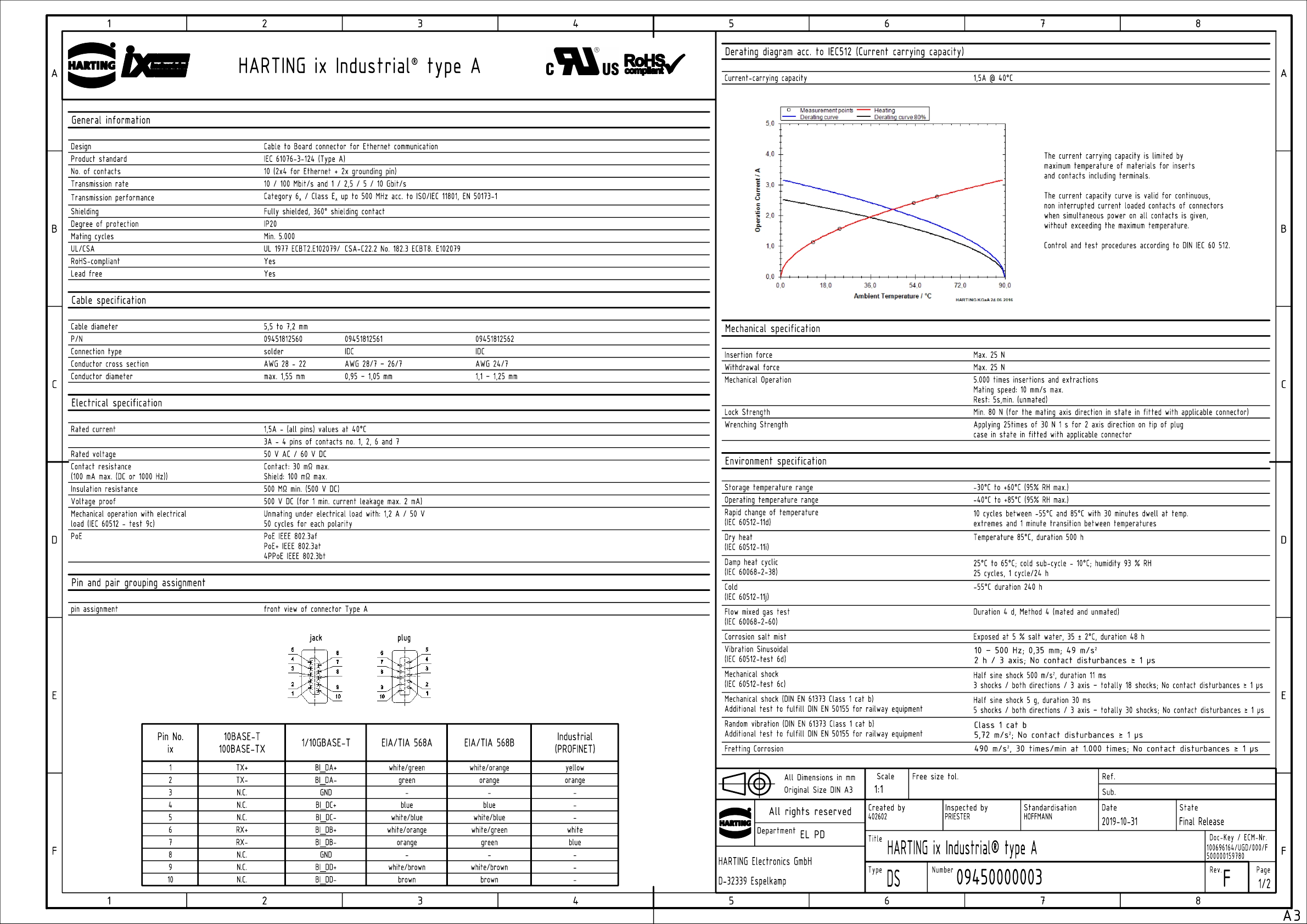 Packaging specification HATTING HATTING ix Industrial® type A ¢ WAl us RSy A 4 Material PE + PS Material specification Isolation material plug L] : Isolation body PA Material Plug hood PC Color Black UL classification UL V-0 Isolation material jack Material L B Color Black UL classification UL V-0 Contact Contact material Sapper alloy Planing contact zone 0,2 ym} over Ni (min. 1,27 pm) — Plating solder area 0,05 pm) over Ni {min. 1.27 pm} Shielding shells Material Stainless steel Plath Sn [min.