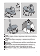 • • • RO • • • BG Utilizaţi doar accesoriile autorizate de către producător şi piese de schimb corespunzătoare. Acest balansoar este adecvat pentru copii în vârstă de până la 9 luni şi o greutate maximă de 9 kg. Nu folosiţi niciodată traversa de joacă pentru a purta scaunul pentru copii în poziţie culcată. Îngrijire şi întreţinere Vă rugăm să aveţi în vedere etichetarea textilă. Vă rugăm să verificaţi în mod regulat funcţionalitatea elementelor de legătură, a sistemelor de centură şi a cusăturilor.