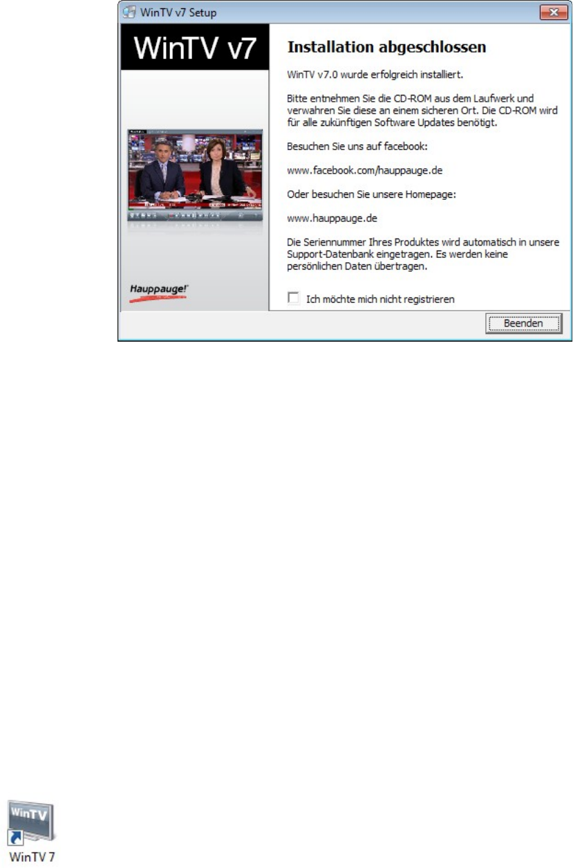 Nach der Installation sehen Sie das „WinTV 7“ Icon auf dem Desktop: