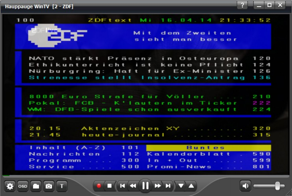 Bei erneutem Anklicken des Videotext Buttons oder Anwählen des Eintrags Videotext im