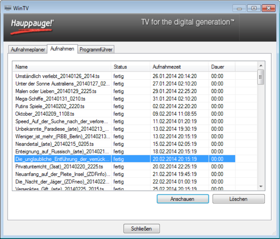 - Aufnahmeplaner, Aufnahmen und Programmführer
