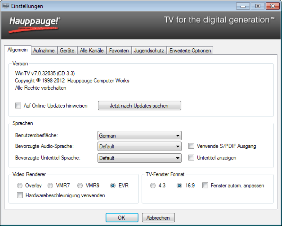 Registerkarte „Allgemein“ - Allgemeine Einstellungen