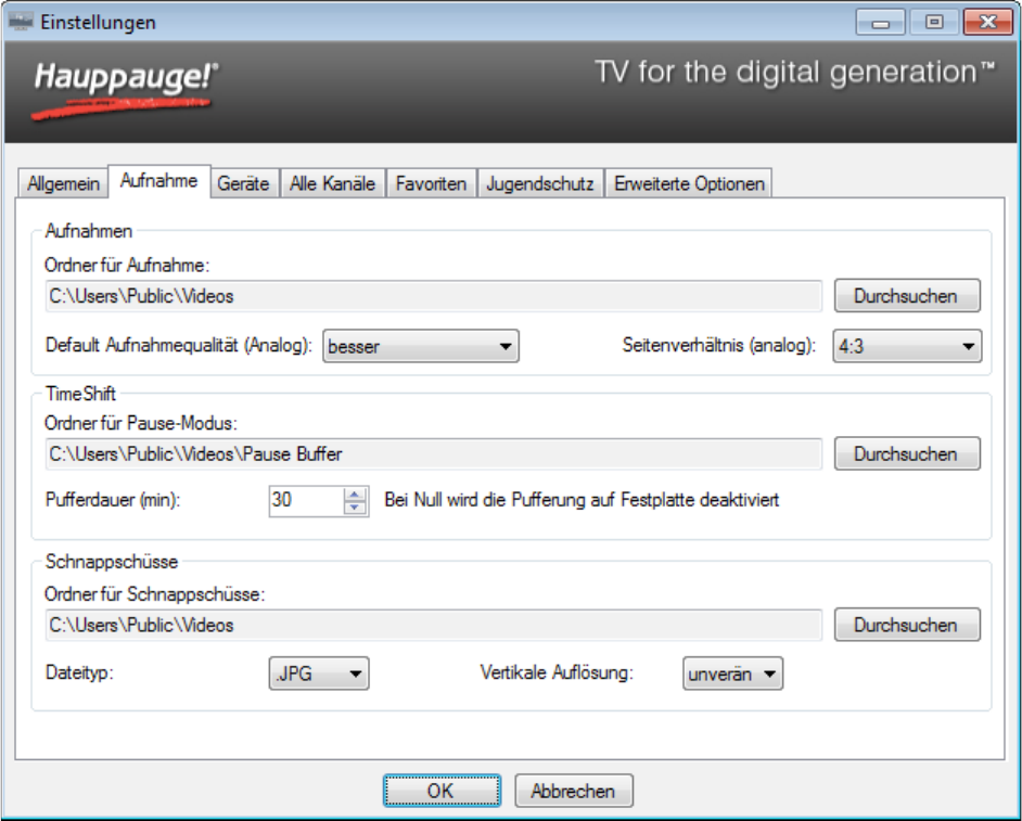 Ordner für Pause-Modus : Gibt den Ordner an, in dem die Pufferdatei für den Timeshift-