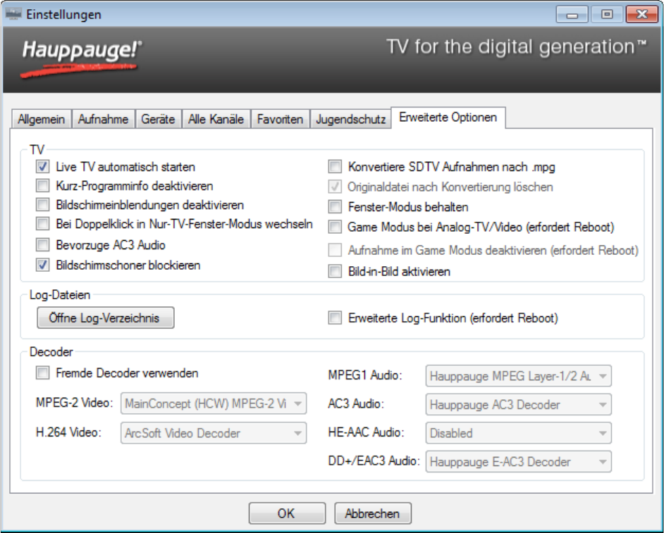 Live TV automatisch starten : Wenn diese Option aktiviert ist, wird beim Start der WinTV-
