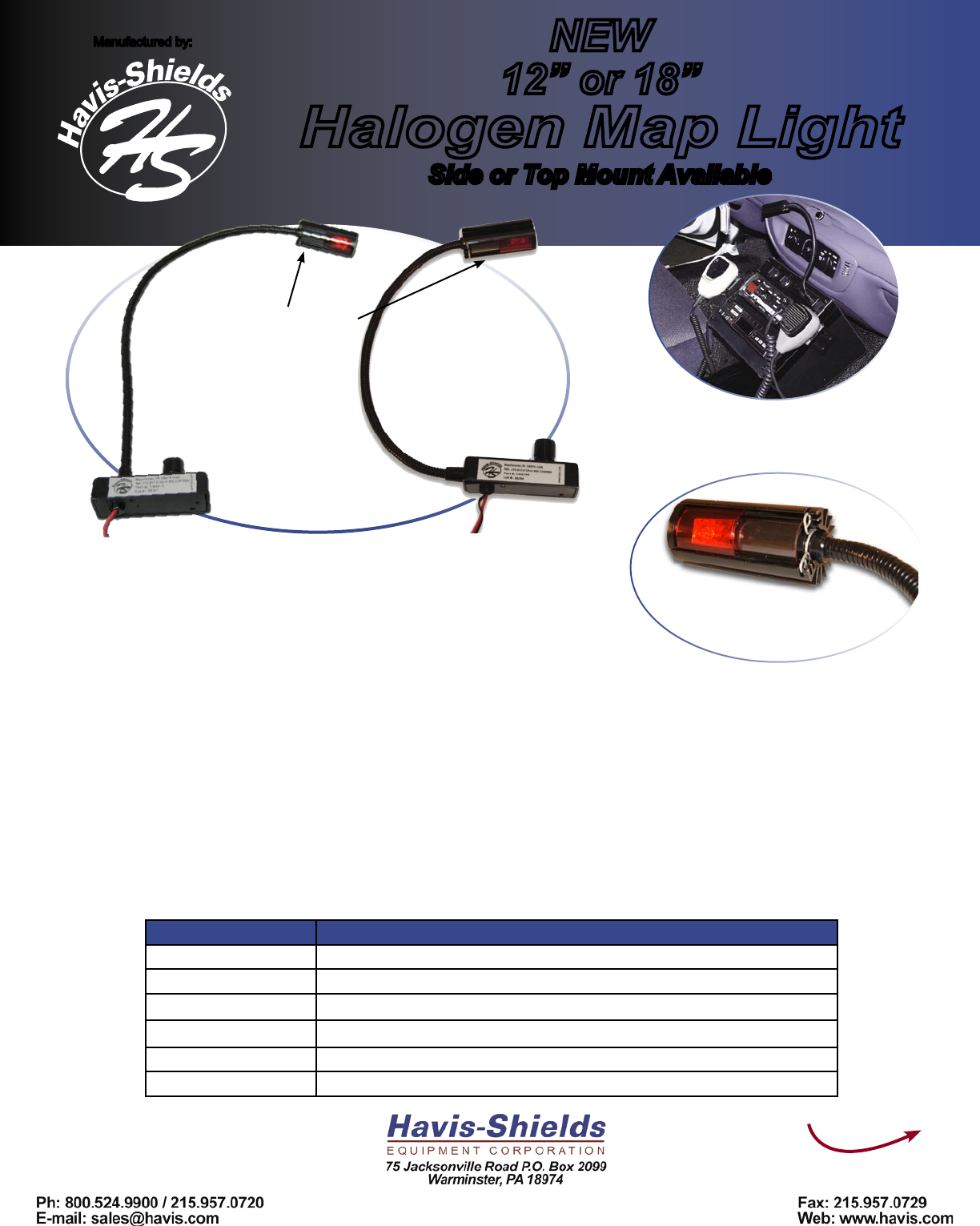 The new Havis-Shields Map Light features a bright 5 watt halogen