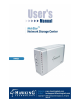 Unpack and Inspect Open the package and carefully remove all items. The complete HNAS1 package consists of: x x x x x x One HNAS1 Network Storage Center (hard drive not included) One CD with utility, user’s manual, and quick installation guide One quick installation guide One power adapter (12V/3A) Four rubber feet Four screws for fastening/securing the hard drive Please check to make sure that the unit was not damaged during shipping and that no items are missing.
