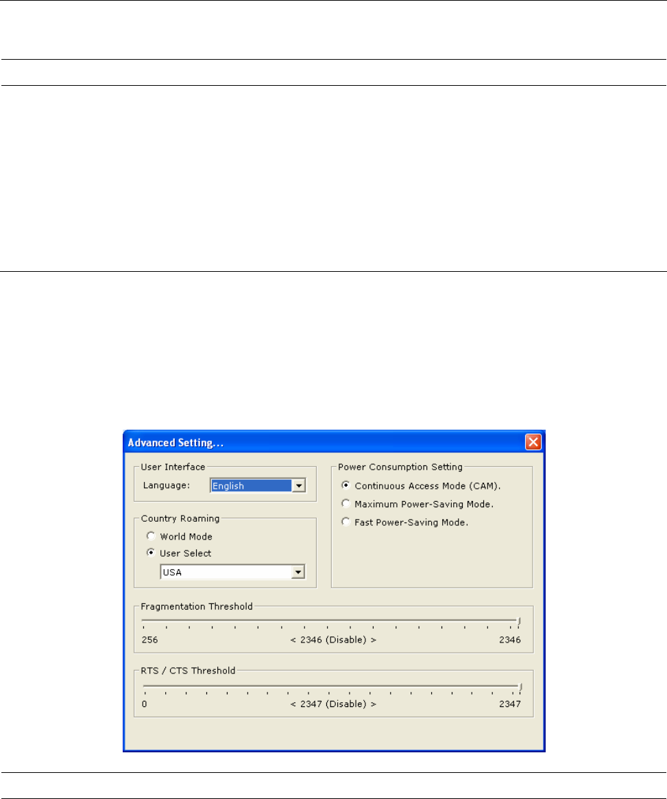 consumption mode, setup the fragmentation threshold and RTS/CTS threshold of the