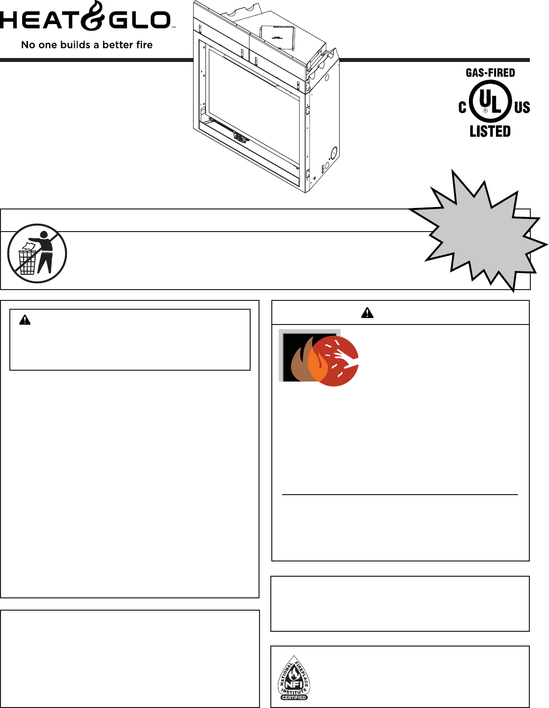Read this manual before installing or operating this appliance. Please retain this owner’s manual for future reference. A. Congratulations This owner’s manual should be retained for future reference. We suggest that you keep it with your other important documents and product manuals. Congratulations on selecting a Heat & Glo gas fireplace, an elegant and clean alternative to wood burning fireplaces.