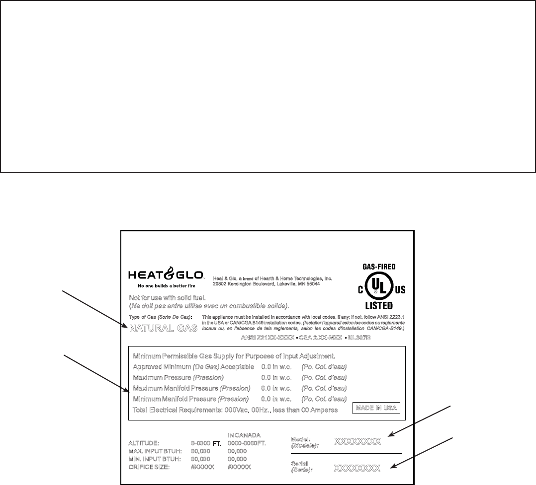 Serial Number: __________________________________________ Location on fi replace: _____________________