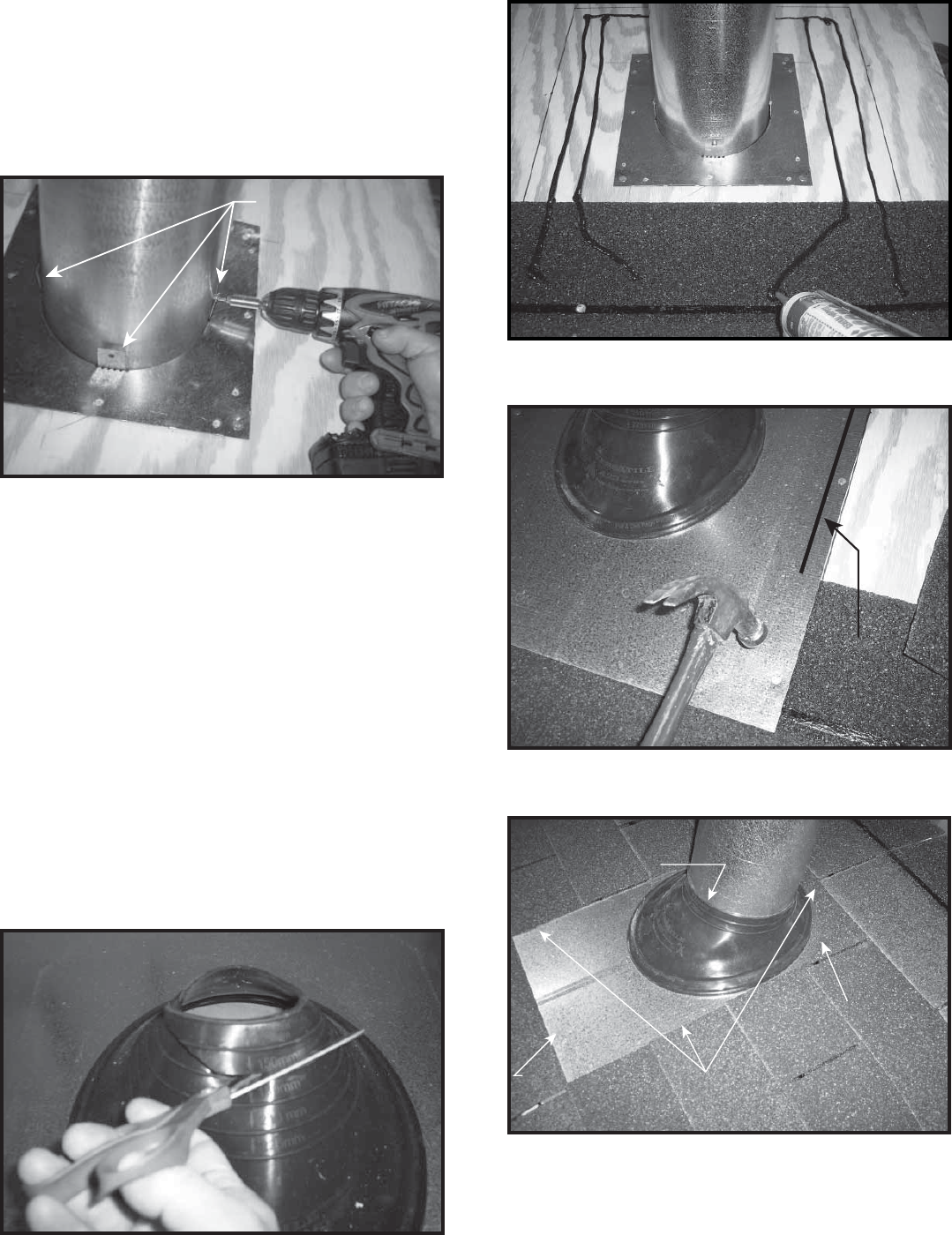 • Lubricate pipe or fl ue with water and slide the fl ashing