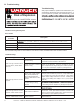 IntelliFire Touch Ignition System - (continued) Troubleshooting (continued) Symptom Pilot sparks but does not light, after 90 sec, 3 Red/1 Green Lockout. Possible Cause Corrective Action No gas supply. Verify incoming gas line ball valve is ‘Open’. Verify inlet pressure is within requirement for gas type used. Contact gas supplier. ECM 2.0 has poor ground. Verify wiring, check valve harness black wire is securely grounded to metal chassis. Gas valve defective.
